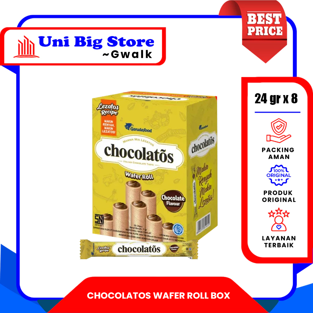 CHOCOLATOS WAFER ROLL CHOCOLATE COKLAT COKELAT ROL BOX - (24 pcs x 8 gr)