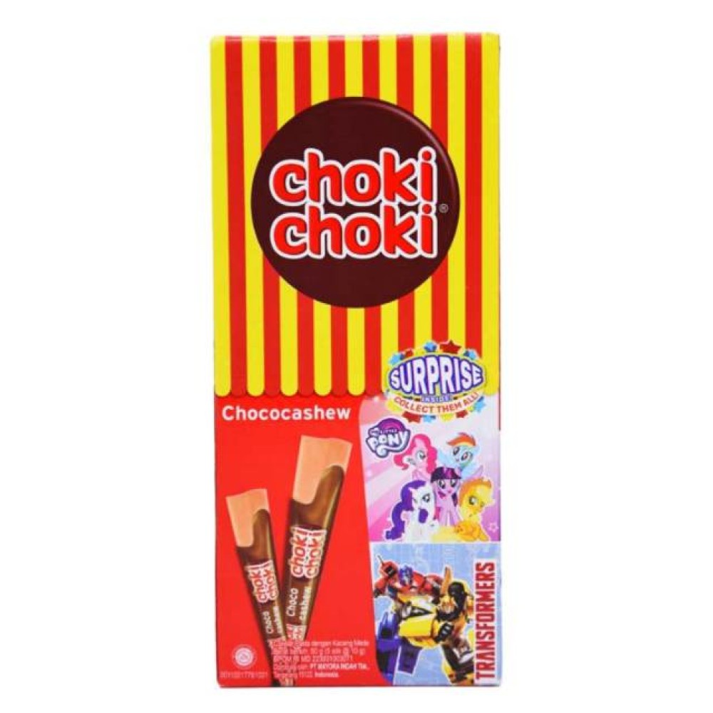 Choki-choki merupakan coklat yang sangat populer di masyarakat. Berupa coklat pasta yang lezat dengan kacang mede yang nikmat. Choki Choki pelopor coklat pasta jajanan jadul yang disenangi anak-anak. Rasanya yang lezat bisa dimakan langsung atau sebagai olesan pada roti. Bisa menemani waktu santaimu sebagai camilan bersama orang-orang terdekatmu dimanapun kapanpun. Dikemas dengan bungkusan plastik yang berbentuk memanjang seperti pensil. Produksi PT. Mayora Indah Tbk. Terdaftar BPOM RI MD dan sertifikasi Halal MUI