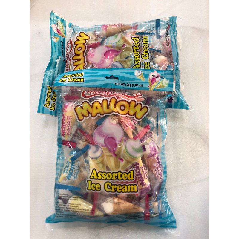 Marshmallow rasa assorted dengan bentuk cone ice cream mini. Rasanya super enak, manis, dan kenyal. Banyak disukai anak-anak hingga orang dewasa.