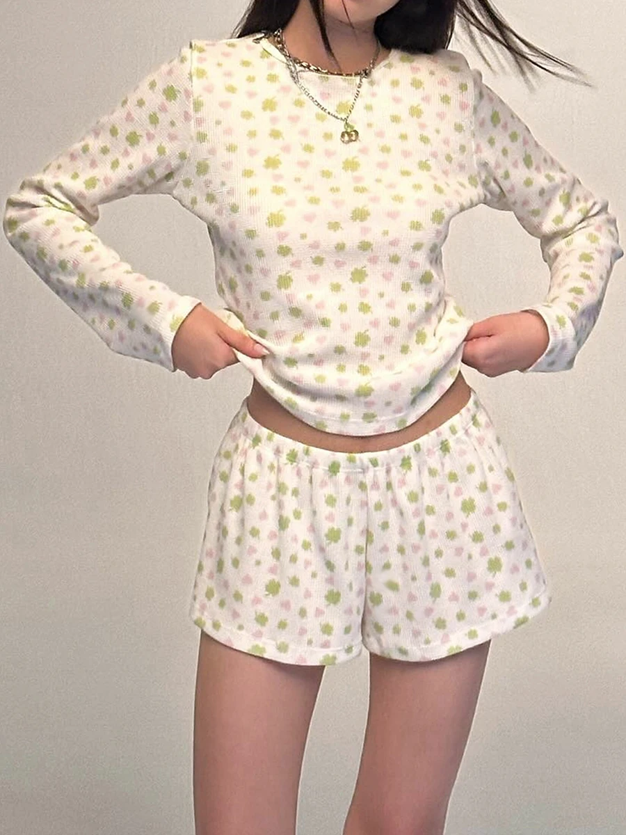 CHQCDarlys женские комплекты из 2 предметов с шортами Y2K пижамный комплект для отдыха Топы с длинным рукавом и шорты Комплект для сна одежда для отдыха