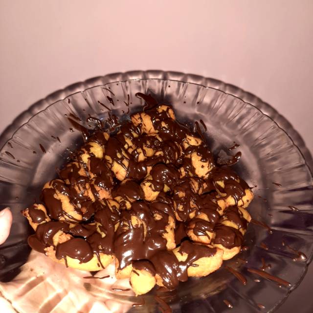 coklat terpisah. kalau mau makan churrosnya digoreng dulu yaa lalu coklatnya disiram diatasnya, kalau lebih suka dicocol juga boleh. sesuai selera masing masing