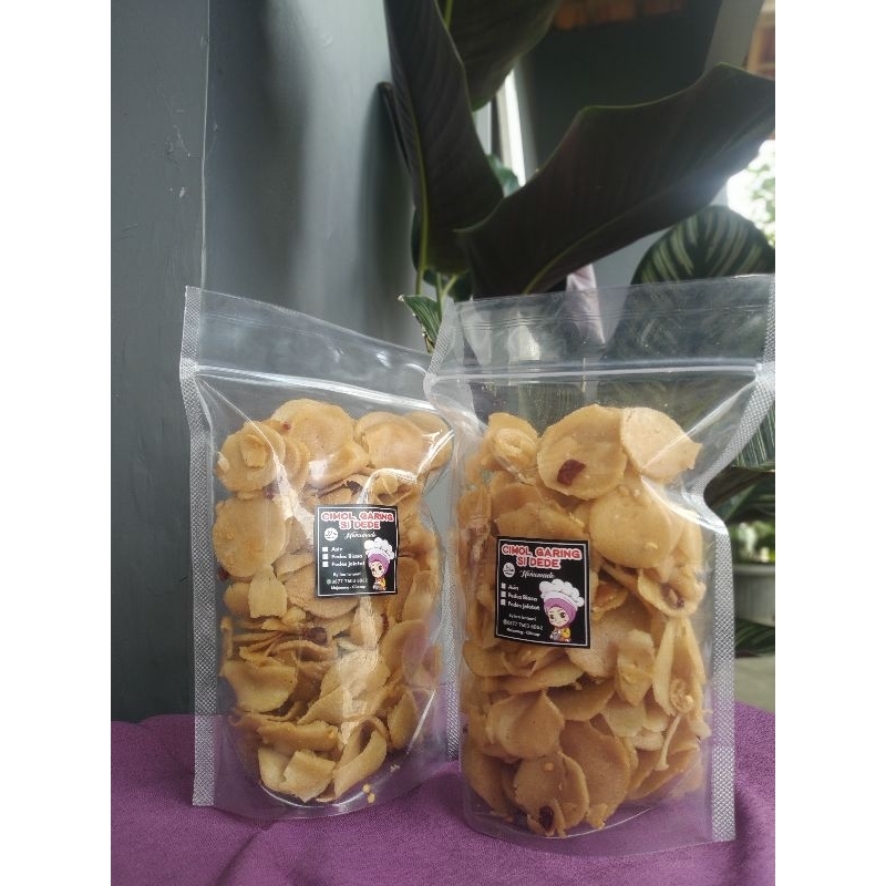 Cimol Garing dengan varian rasa pedes biasa, hanya memakai cabe kering dan bawang putih, membuat rasa Cimol enak sedikit pedes dan gurih.