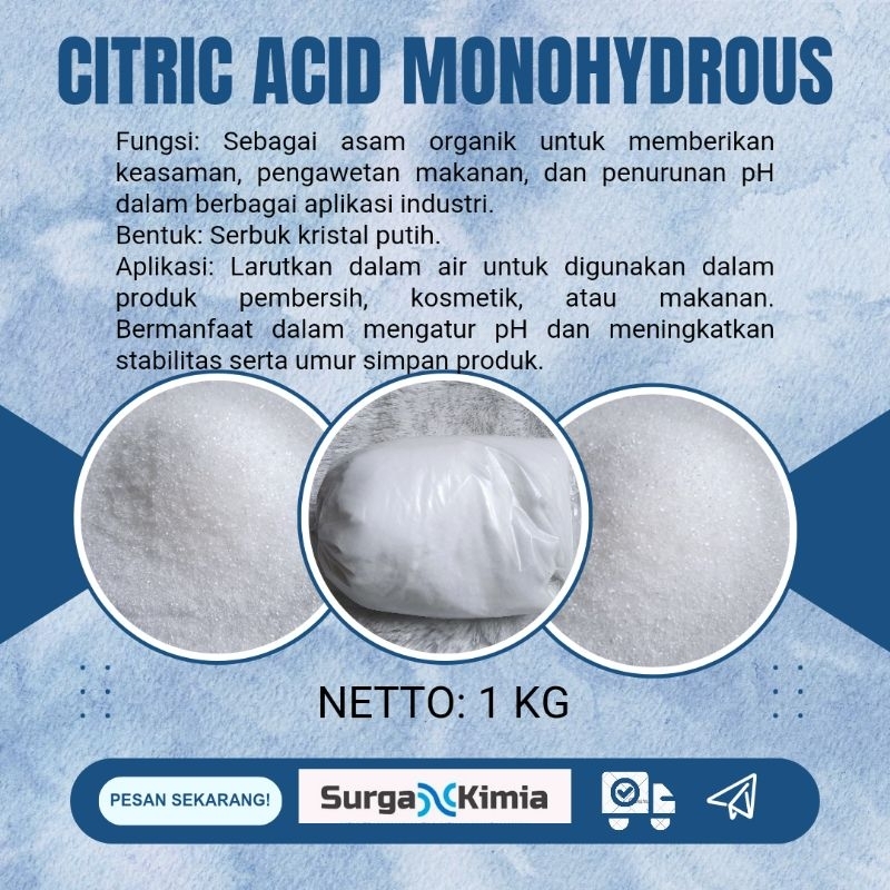 Dengan Citric Acid Monohydrous, Anda mendapatkan solusi kimia yang sangat fleksibel dan efektif untuk berbagai aplikasi. Apakah Anda memerlukan bahan untuk produk pembersih, kosmetik, makanan, atau aplikasi industri, citric acid ini adalah pilihan yang tepat untuk memastikan hasil yang optimal.❤️