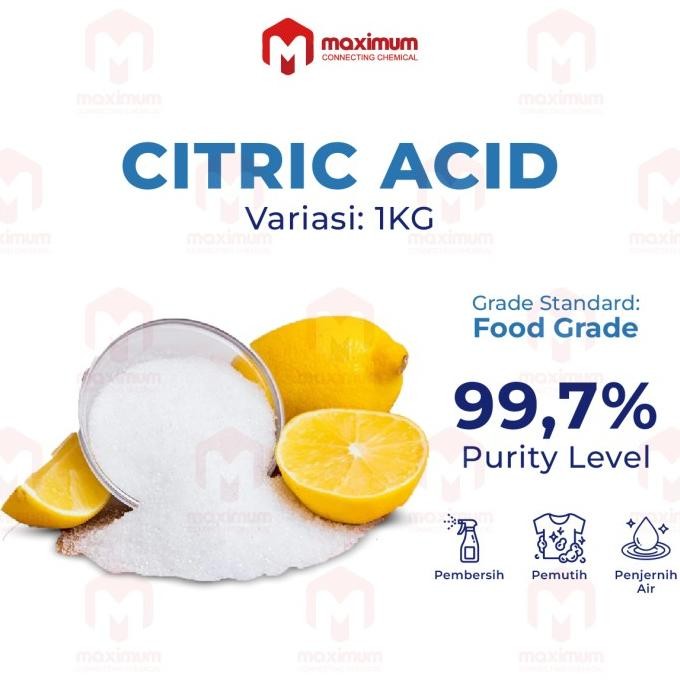 Citric Acid adalah bahan tambahan pangan yang dapat memberi rasa asam, mengatur pH keasaman dan juga bisa di gunakan untuk pembersih, pemutih, penjernih air, dll.