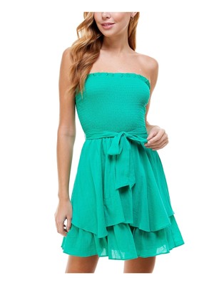 CITY STUDIO Женское зеленое короткое платье без бретелек с галстуком и расклешенным принтом для юниоров, Зеленый