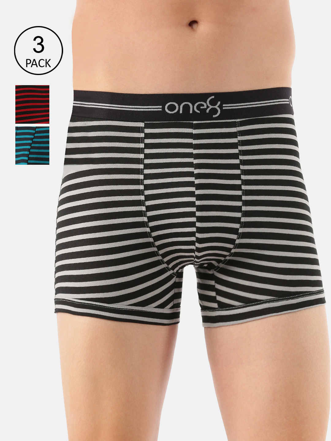 one8 by Virat Kohli Men Pack Of 3 Cotton Trunks 730-PO3-Grey/Red/Seagreen-Grey Melange