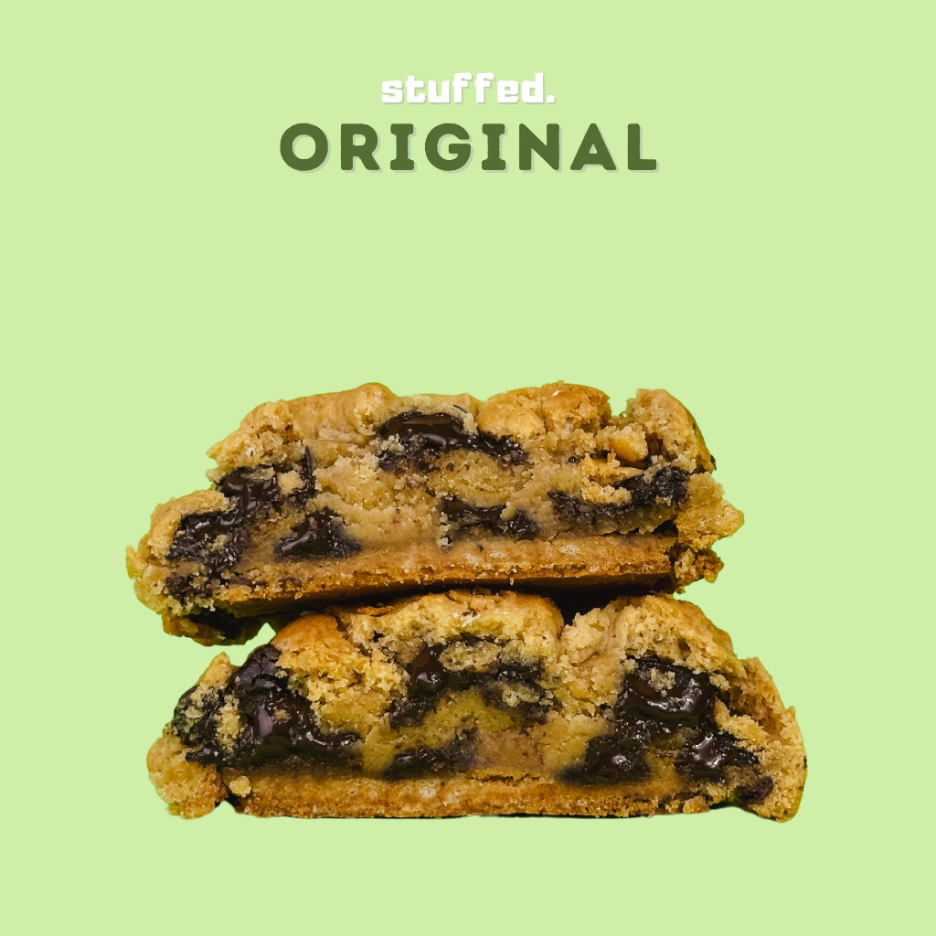 Stuffed Cookies dengan texture kue yang renyah dan chewy lembut di dalam dan rasa yang enak karena menggunakan bahan-bahan premium