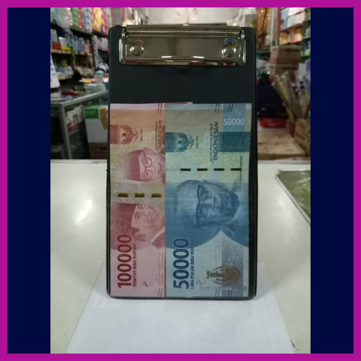 Dilengkapi wire clip pada bagian atas untuk jepit kertas / uang dan kantong / pocket plastik transparan pada bagian bawah untuk menyelipkan kartu pembayaran debit / kredit.