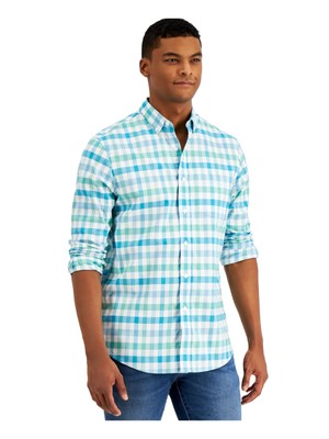 CLUBROOM Мужская оксфордская синяя эластичная рубашка на пуговицах с градиентом, Синий, 100118300MN
