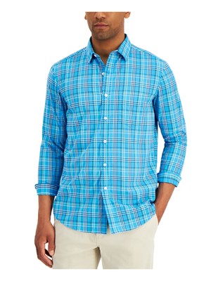 CLUBROOM Мужская эластичная повседневная рубашка в бирюзовую клетку на пуговицах, Turquoise, 100126397MN