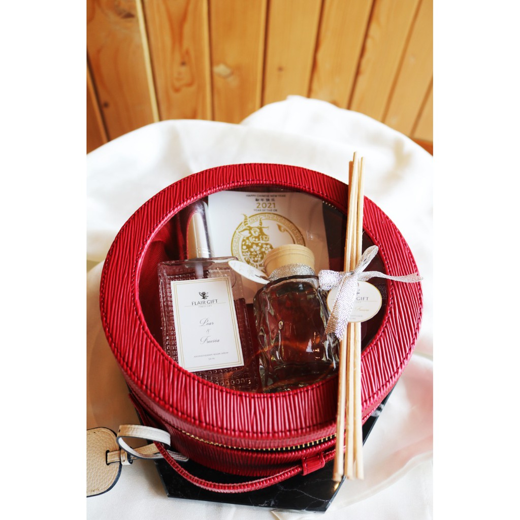 All hampers will be wrapped beautifully inside an exclusive round and square mini leather luggage box, that are custom made, practical, versatile, and reusable to store your daily essentials.