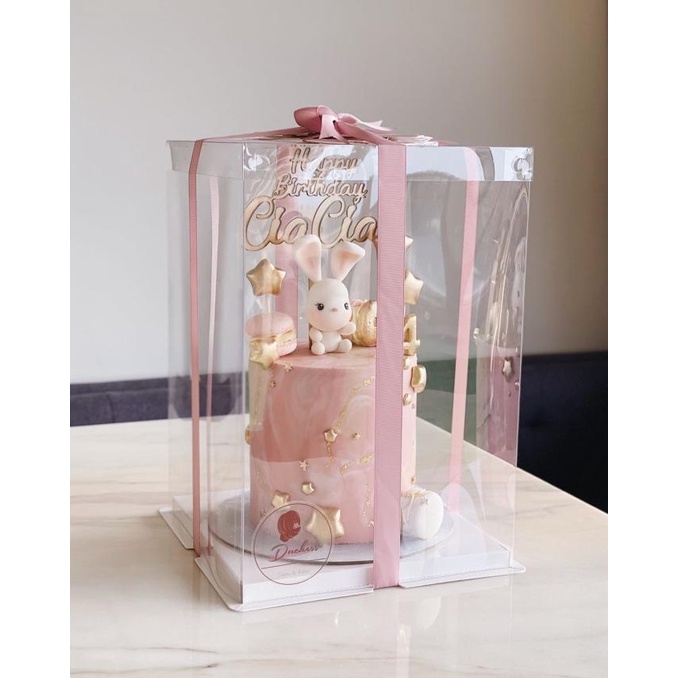 Packaging untuk kue dekorasi, berbahan mika yang bagus, sangat bening dan tebal.