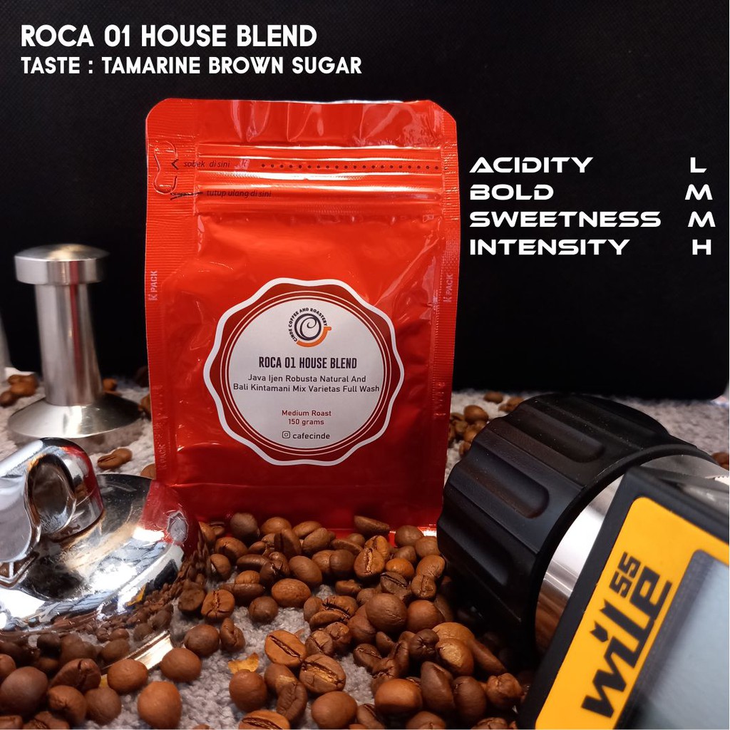 Menggunakan perpaduan biji kopi Robusta dan Arabica pilihan yang seluruhnya diproses ‘medium roast’, dikombinasikan dalam komposisi rasio campuran ala Cinde Roastery dari asal daerah (origin) Indonesia yaitu Java Ijen Robusta Natural dan Kintamani Mix Varietas Full Wash. Seluruh produk dikemas dalam packaging 150 gram dengan ‘grind size’ yang cocok untuk metode ‘manual brew’ ataupun ‘espresso base’.
