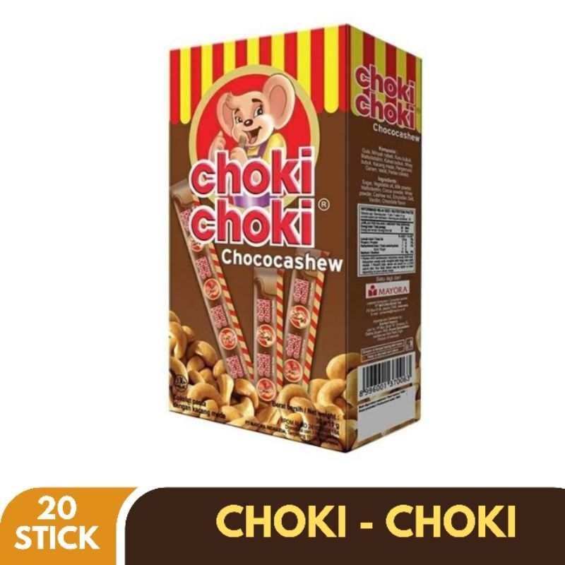 choki choki coklat pasta dengan kacang Mede, terbuat dari coklat yang lezat dan kacang Mede pilihan yang berkualitas serta mengandung susu yang creamy dan nikmat kemasan 1 box isi 20