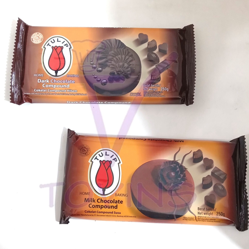 Tulip Compound Dark adalah merek dari cokelat premium yang hanya dibuat menggunakan kakao bubuk yang berkualitas. Memiliki rasa cokelat yang kaya dan kuat, serta mudah lumer di mulut.