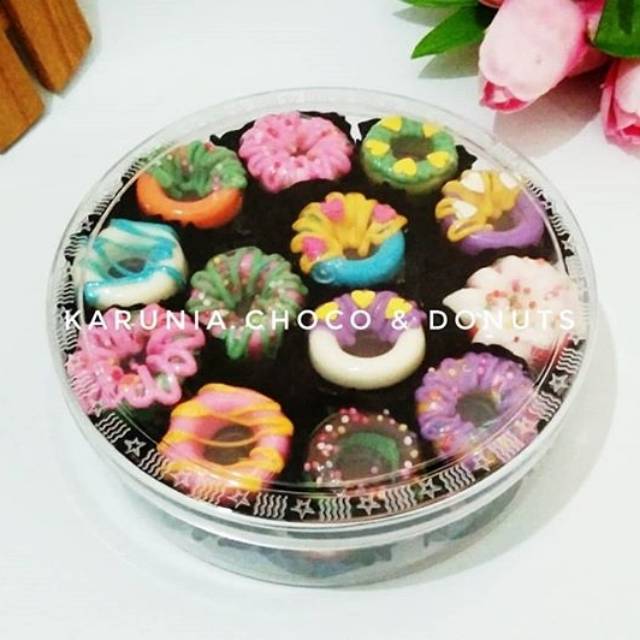 Coklat Praline bentuk donat dengan hiasan berbagai macam topping, cocok buat camilan ato suguhan waktu lebaran