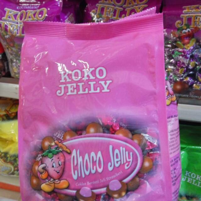 Coklat JELLY rasa strawberry berat bersih 750vr