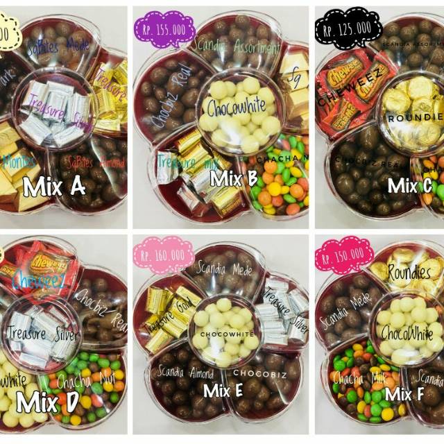 Mix B :Silverqueen Montes, Treasure mix, Scandia Assortment, Chocbiz Real, Chocowhite, Chacha Milk 155rb