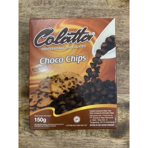 coklat chip colatta dengan bentuk lancip dan bake stable kemasan 150 gr