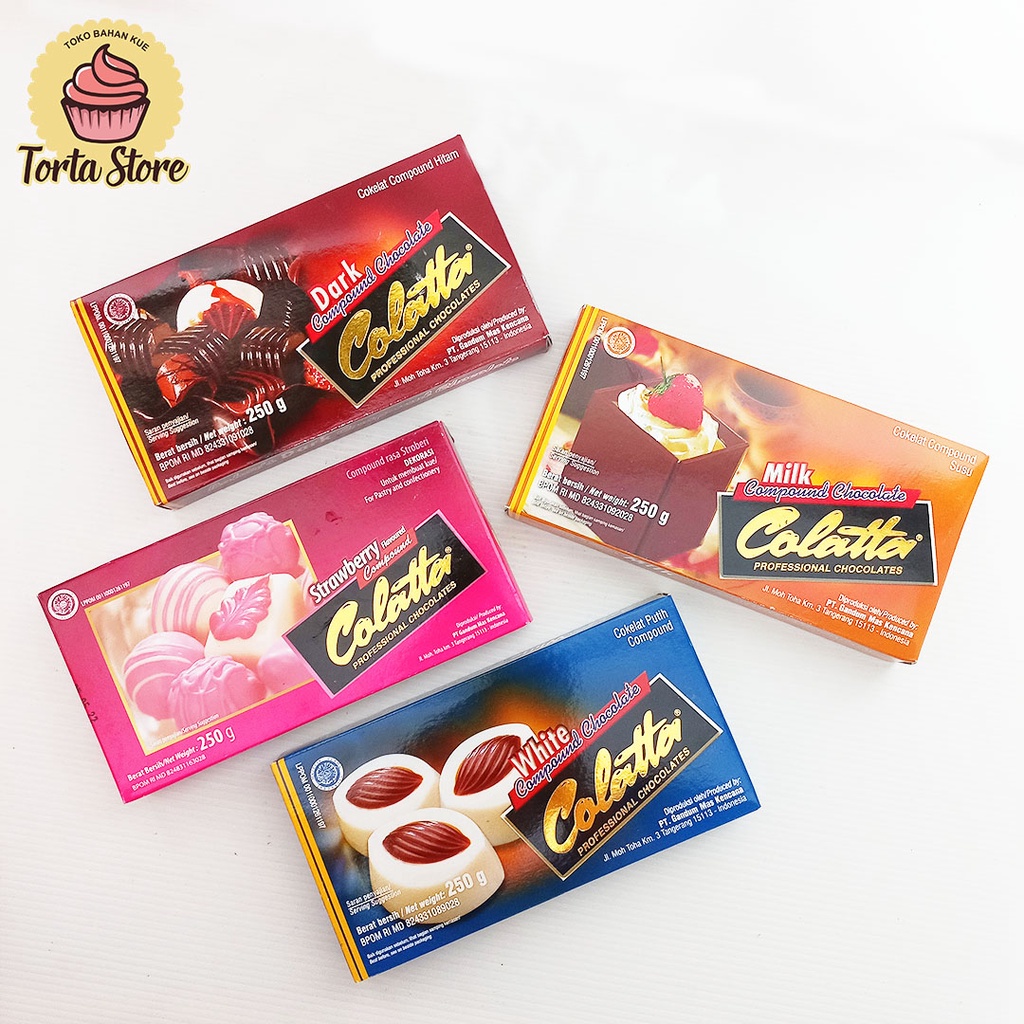 Colatta Compound di formulasikan secara khusus untuk penanganan cokelat yang mudah dan hasil yang terbaik. Cocok untuk hiasan kue, dicetak, diserut, isian kue dan lain-lain.