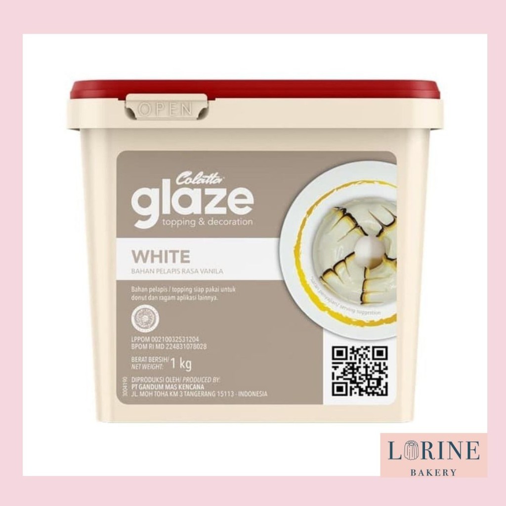 GLAZE WHITE CHOCOLATE COLATTA 1 kg, bahan PELAPIS RASA WHITE CHOCOLATE