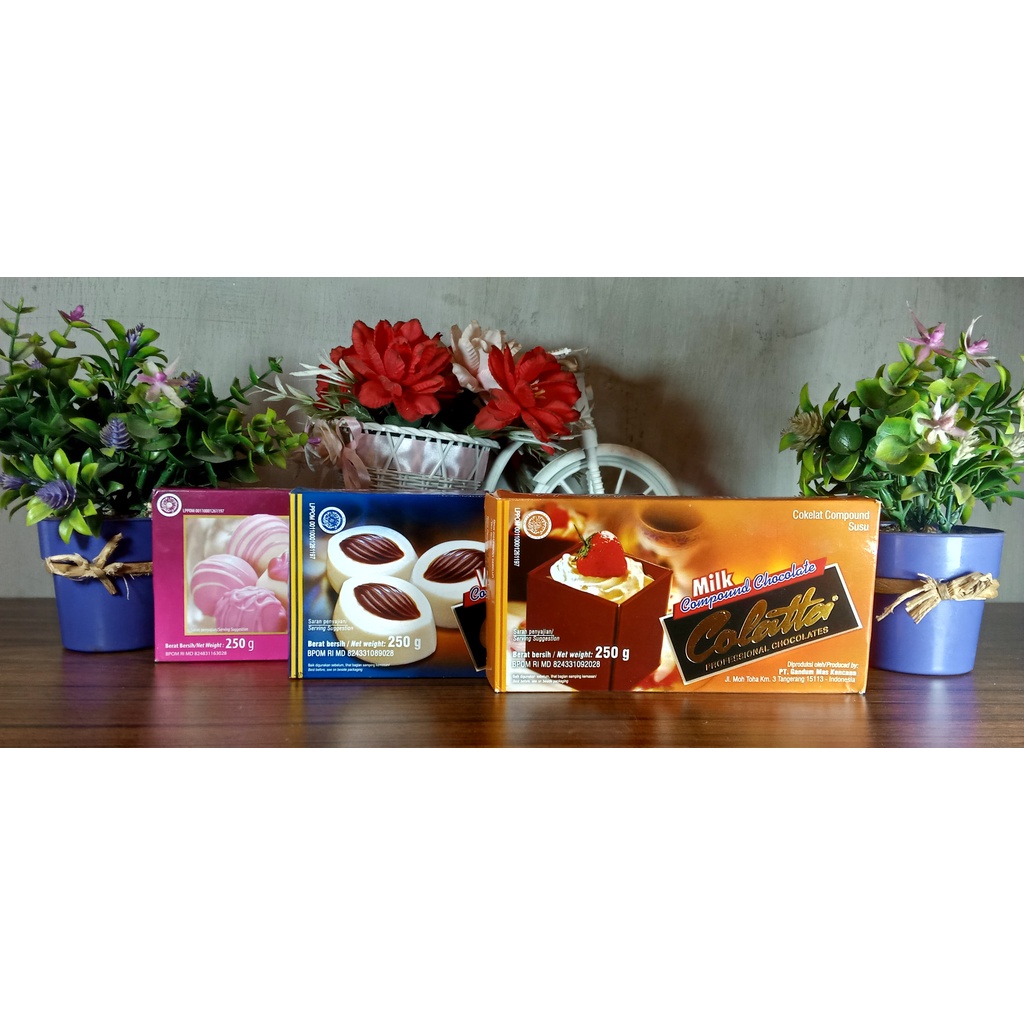 Collata coklat batang compound ini sangat cocok untuk hiasan kue, pastry, toping roti dan untuk campuran makanan lainnya, bisa digunakan dengan cara di cairkan, serut dan juga filling.