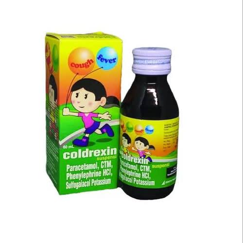 Deskripsi: Coldrexin digunakan untuk meringankan gejala flu seperti bersin-bersin, hidung tersumbat, pusing, dan batuk. | Komposisi: Tiap sendok takar (5 ml) mengandung acetaminophenum 125 mg, phenylephrin 5 mg, cholrpheniramini maleas 1 mg, kalii sulfoguaiacolas 25 mg, alkohol 0,15 %, dan sirup harum q.s ad 5ml. | Dosis: Sesuaikan dengan usia Anak usia di bawah 1 tahun: 3 x 1/2 sendok takar Anak usia 1-5 tahun: 3 x 1/2-1 sendok takar Anak usia 5-10 tahun: 3 x 1 sendok takar Anak usia 10-15 tahun: 3 x 2 sendok takar | Indikasi: Untuk meringankan gejala flu yang disertai batuk | Perhatian Khusus: Hati-hati penggunaan pada penderita dengan gangguan fungsi hati dan ginjal, glaukoma, hipertrofi prostat, hipertiroid, gangguan jantung dan diabetes mellitus. | Kemasan: Box, botol 60 ml sirup | NIE: DTL7627912933A1 | Aturan Pakai: Sesuaikan dengan usia untuk mengonsumsinya. Anak usia di bawah 1 tahun: 3 x 1/2 sendok takar Anak usia 1-5 tahun: 3 x 1/2-1 sendok takar Anak usia 5-10 tahun: 3 x 1 sendok takar Anak usia 10-15 tahun: 3 x 2 sendok takar Untuk penyajian baru dapat dikonsumsi setelah makan.
