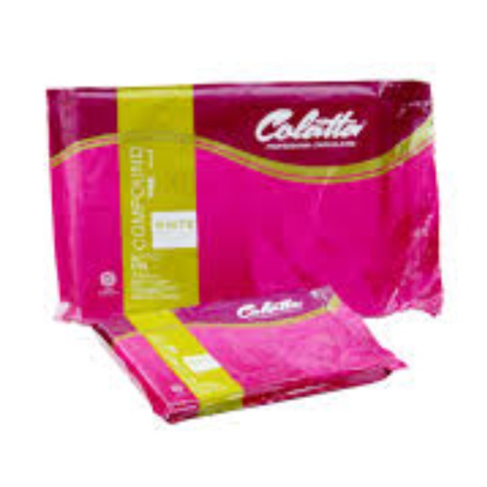 Cokelat compound putih merek collata yang sudah sangat terkenal akan kualitasnya.