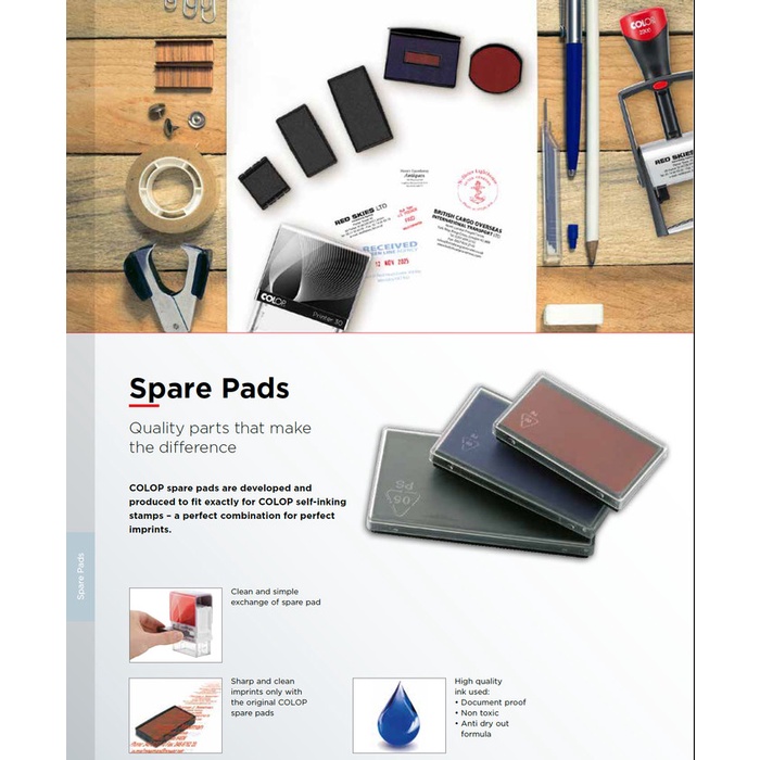 Replacement pad untuk COLOP Stamp R40 tanpa dater di bagian tengahnya. bisa menampung satu jenis rna.