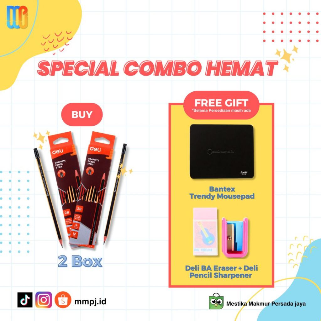 [COMBO SUPER HEMAT] Deli Graphite Pencil 2 Box + Free Deli Eraser + Deli Sharpener + Free MousePad