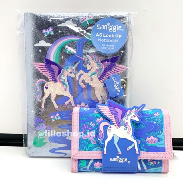 1.Unicorn smiggle notebook A5 ( lengkap dengan gembok dan kunci, isi 80 lembar, 160 halaman )