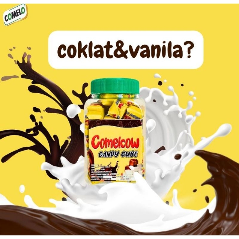 untuk comelcow candy cube benar" terbuat dari bubuk susu dancow dengan rasa coklat dan juga vanila