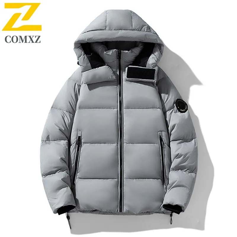 COMXZ теплая толстая зимняя стеганая куртка с капюшоном, однотонная модная молодежная дорожная стеганая куртка, стильное пальто-паркер, мужская одежда