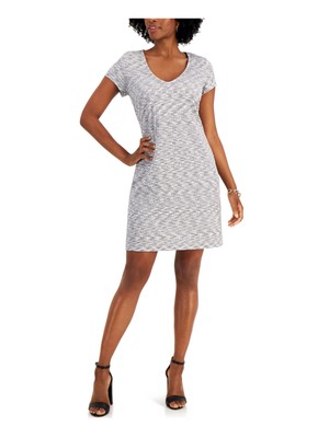 CONNECTED APPAREL Женское трикотажное платье с короткими рукавами и V-образным вырезом для миниатюрных размеров, Серый