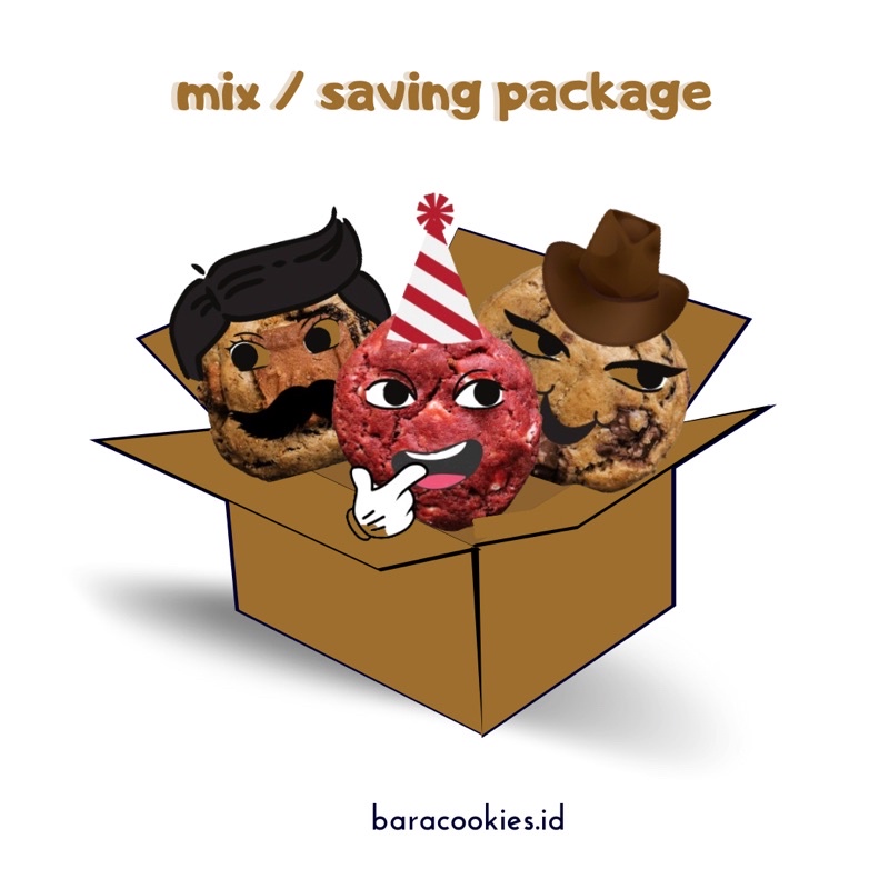 1 Paket isi 3piece (red velvet, sweet choco, lotuscrumbs).