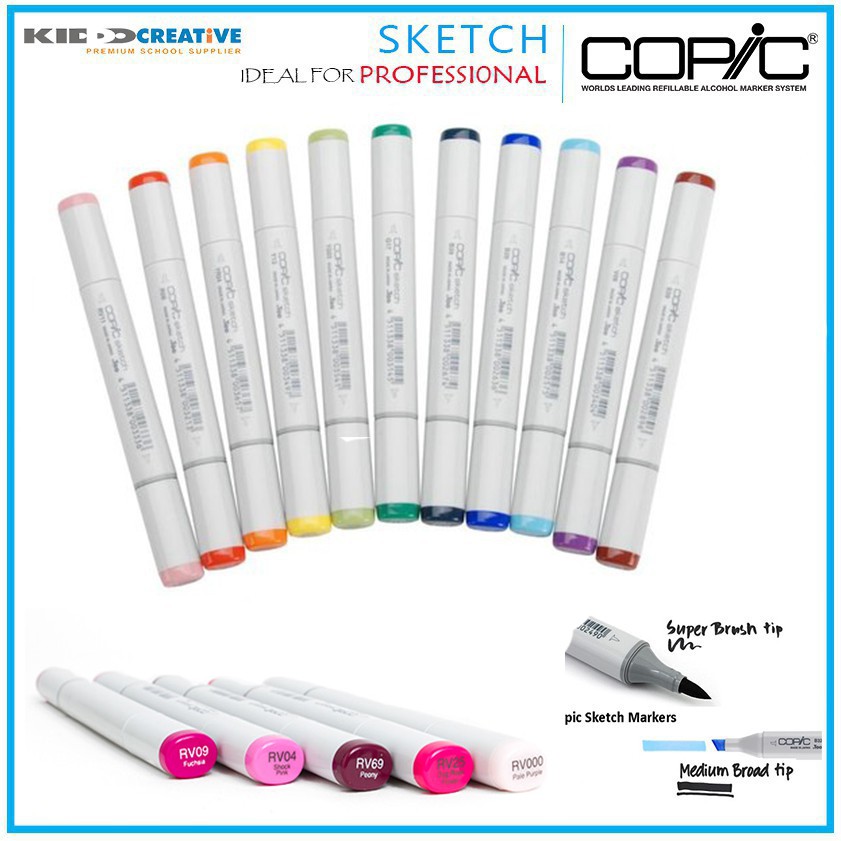 COPIC Sketch marker adalah tipe COPIC yang paling popular. Memiliki warna terbanyak dibandingkan tipe-tipe COPIC yang lain. Memiliki dua jenis Nib yaitu Medium Broad pada satu ujung dan Super Flexible brush pada ujung yang lainnya. Cocok untuk Ilustrasi.