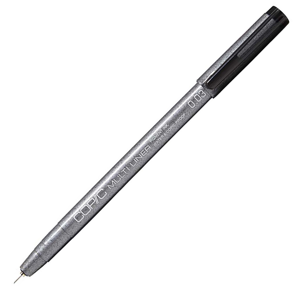 Copic Multiliner Pens are fine quality inking pens available in a variety of sizes and styles. The pigment-based ink is waterproof and won't bleed or smear when used with Copic Markers. These quick-drying pens are ideal for anime, illustration, cartooning, pen-and-ink drawing, scrapbooking, and other detail work. Copic's polyester nibs won't roll or bend, and they're housed in a durable plastic case with "click fit" caps that prevent dryout.