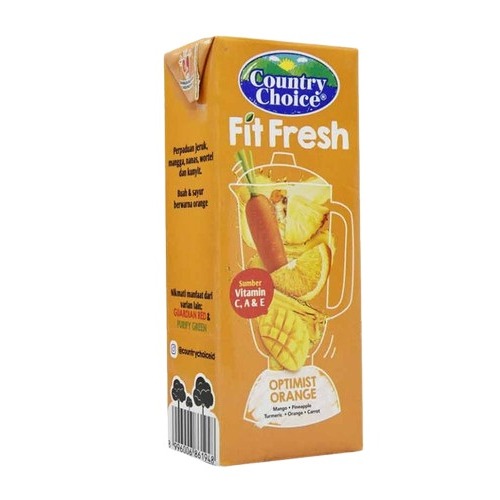 Country Choice Fit Fresh merupakan RTD juice campuran buah, sayur dan herbal, dengan multivitamin dan rasa yang enak. Pilihan sehat, yang hadir dengan manfaat fungsional yang berbeda, diwakilkan oleh warna :