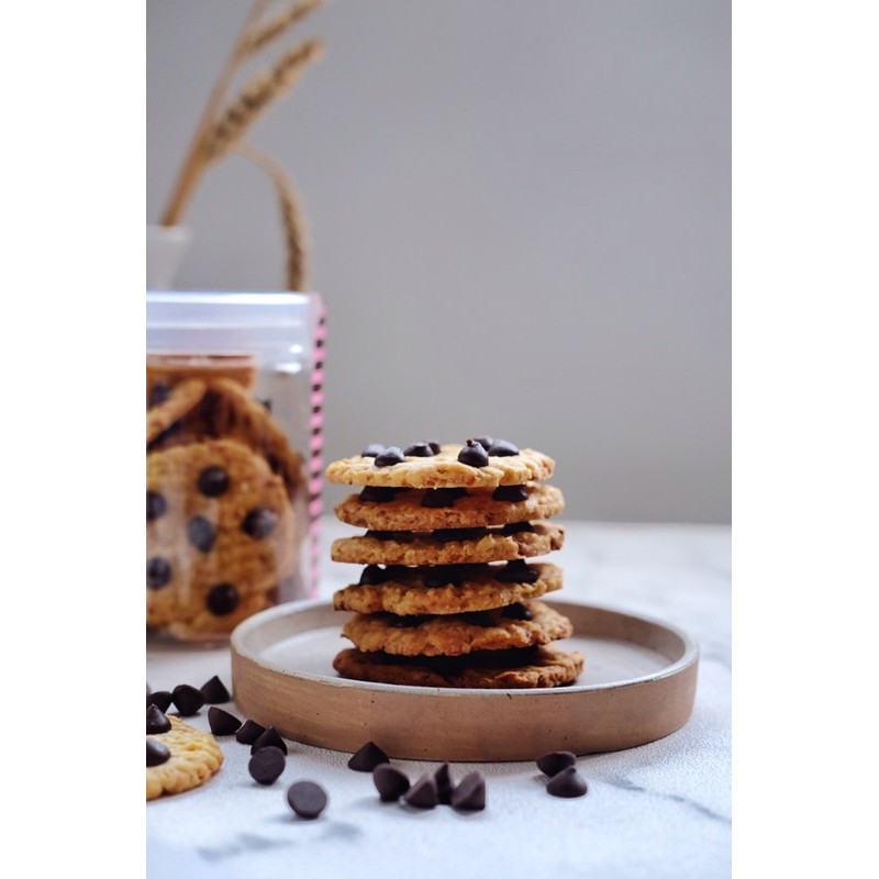 chruncy cookies dengan bahan dasar keju Edam yg bikin bener2 crispy ketika di mulut serta rasa manisnya dari balutan chocochips