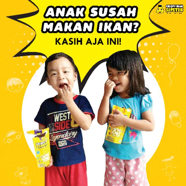 Yaitu, dengan memberi si Kecil Crispy Ikan Sipetek. Makan ikan PRAKTIS tinggal haaap! Tanpa perlu takut tersedak tulang dan terganggu dengan bau amis. Bentuknya yang mungil dan crispy serta tersedia banyak varian rasa NON MSG yang aman dikonsumsi.