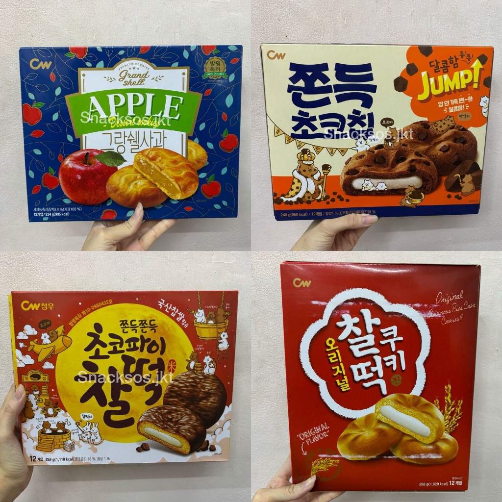 CROWN CHEWY COOKIES CHOCOCHIP COOKIES / RICE CAKE COOKIE ORIGINAL / CHOCOLATE RICE CAKE CHOCOPIE / GRAND SHELL APPLE COOKIE - CW KOREA