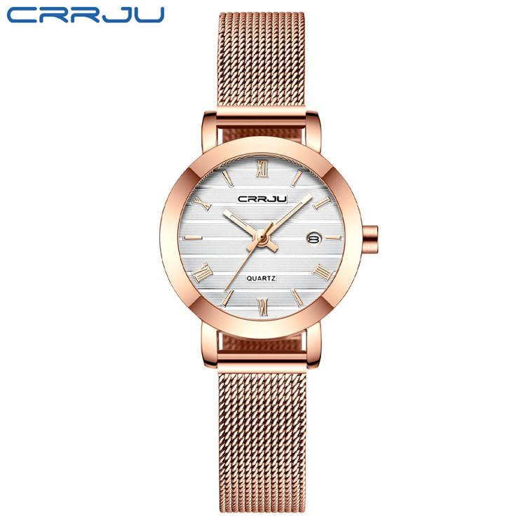 CRRJU2176 Новые модные водонепроницаемые женские часы со стальным ремнем, сетчатый ремень, модные популярные женские часы для студентов