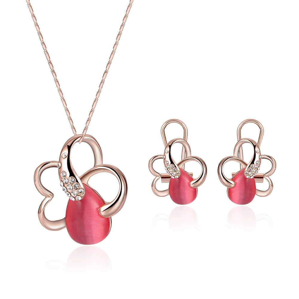CSHOU133, модное розовое ожерелье с цветами и серьги с кристаллами, свадебные украшения для невесты