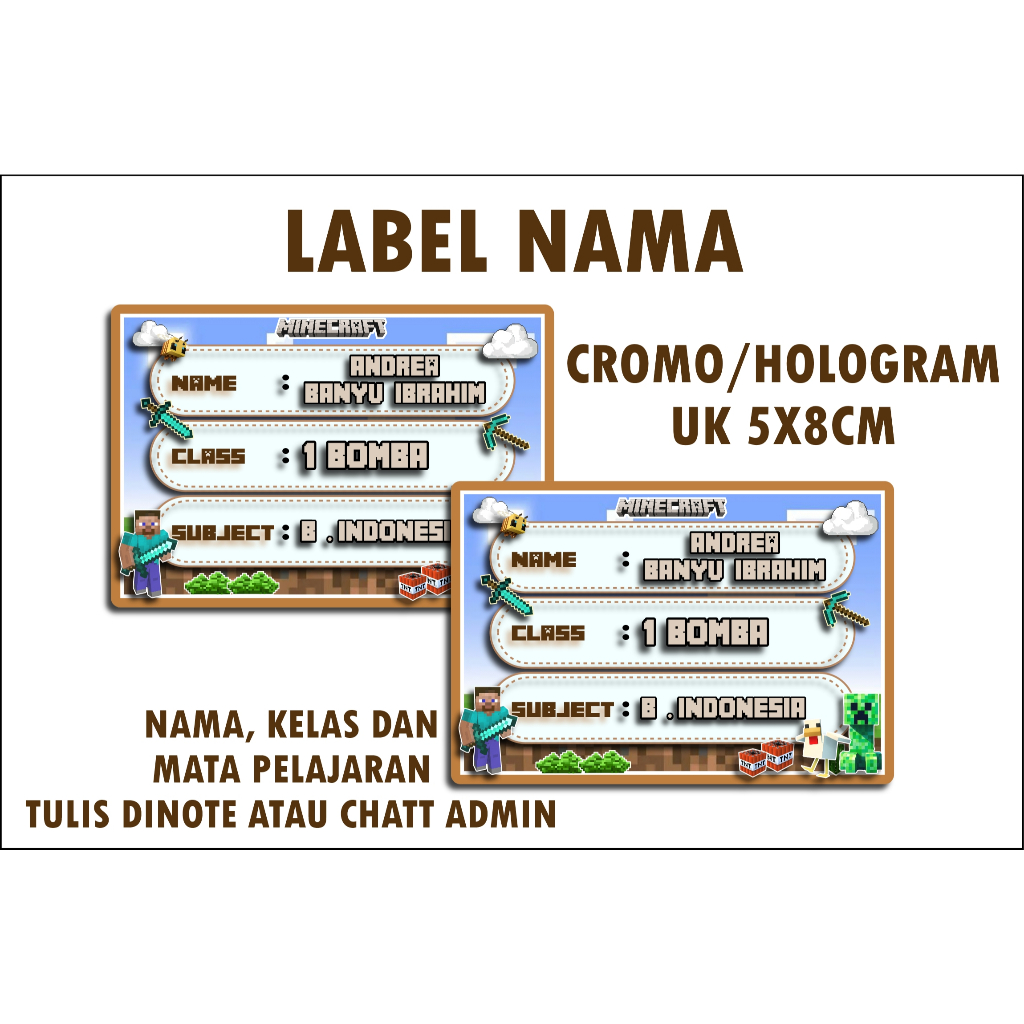 CUSTOM NAMA LABEL NAMA CROMO / HOLOGRAM MINECRAFT 14PCS
