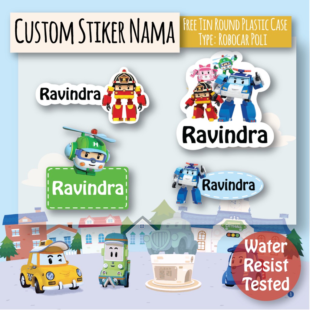 CUSTOM STIKER NAMA ANTI AIR Variasi ROBOCAR POLI - Stiker Vinyl - Label Nama - Stiker Nama Anak