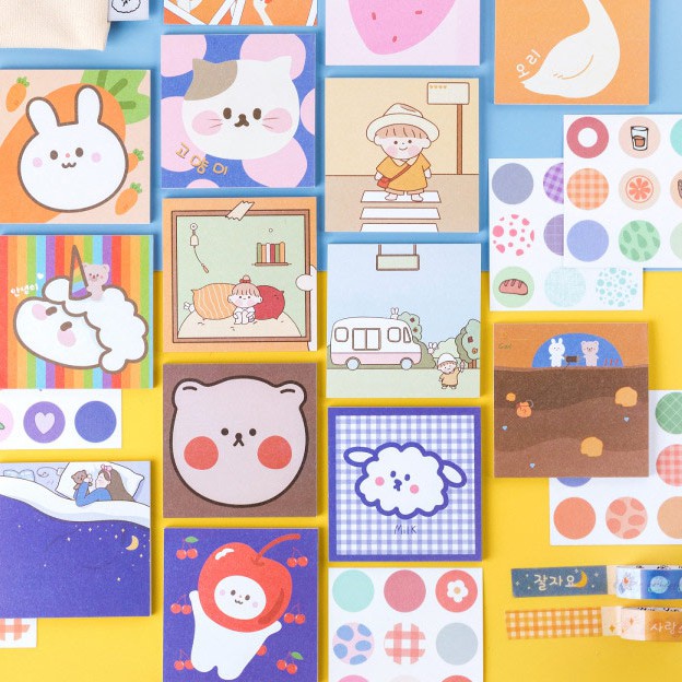 Memo-memo kartun beraneka warna ini paling pas untuk mencatat reminder atau todo list dan menempelkannya pada buku jurnalmu. Tersedia dalam enam belas varian berbeda, tiap varian sudah termasuk stiker uniknya masing-masing.
