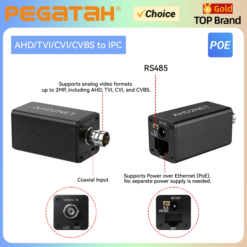 CVBS/TVI/AHD/CVI to IP Camera Converter 1080P Full HD, ONVIF, RJ45, POE Power, For NVR Analog Surveillance Upgrade Video Encoder