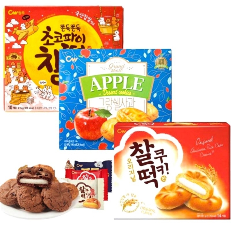 Ini adalah produk makanan ringan dari Korea Selatan bernama "Chaltteok Cookie" dari merek CW. Informasi penting tentang produk ini: