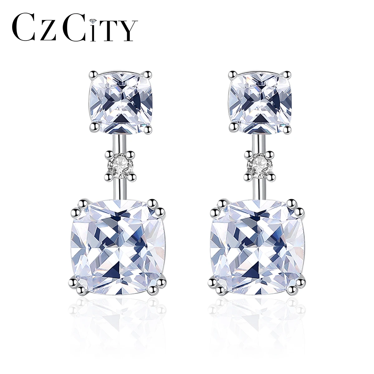 CZCITY 925 искусственный кубический цирконий, Женское Обручальное свадебное роскошное квадратное циркониевое ювелирное изделие