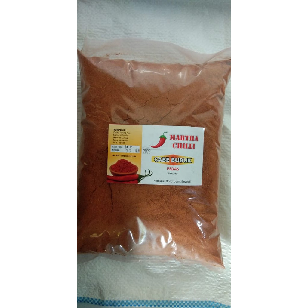 Cabe BubukPedas untuk bahan taburan snack atau untuk menambahkan rasa pedas pada masakan dan makanan